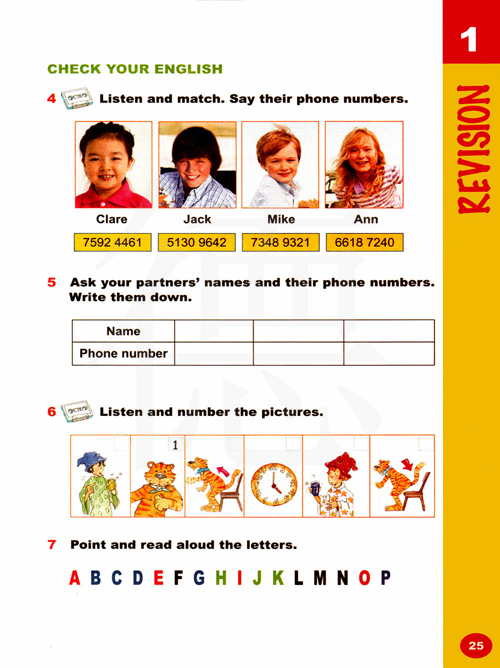 问你搭档的名字和他们的电话号码。把号码写下来。
