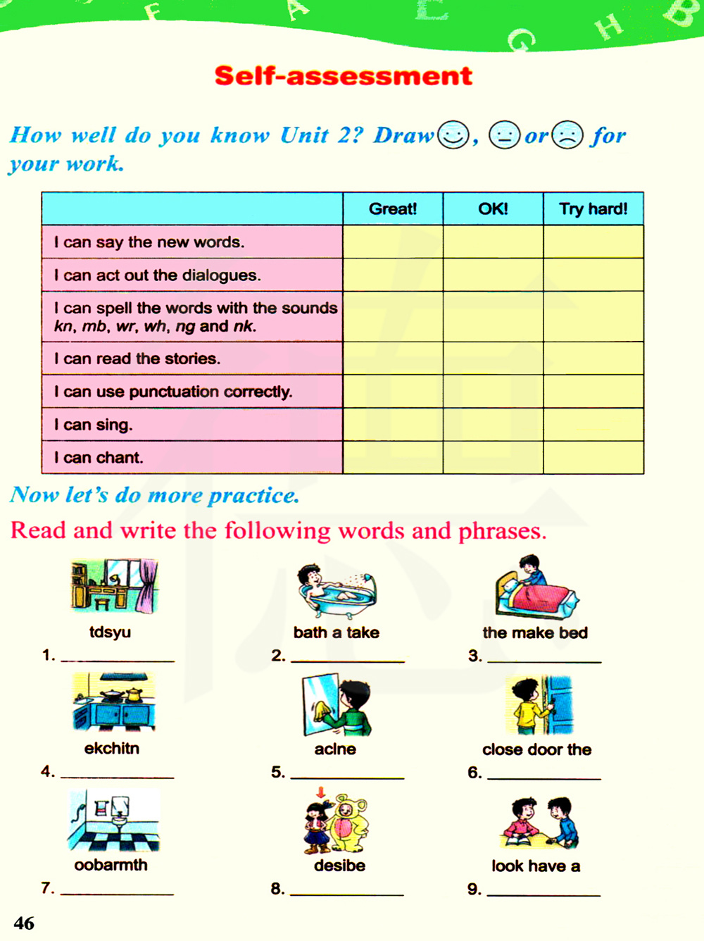 第二单元你掌握的怎么样?根据你的学习表现画笑脸、平常的脸或哭脸