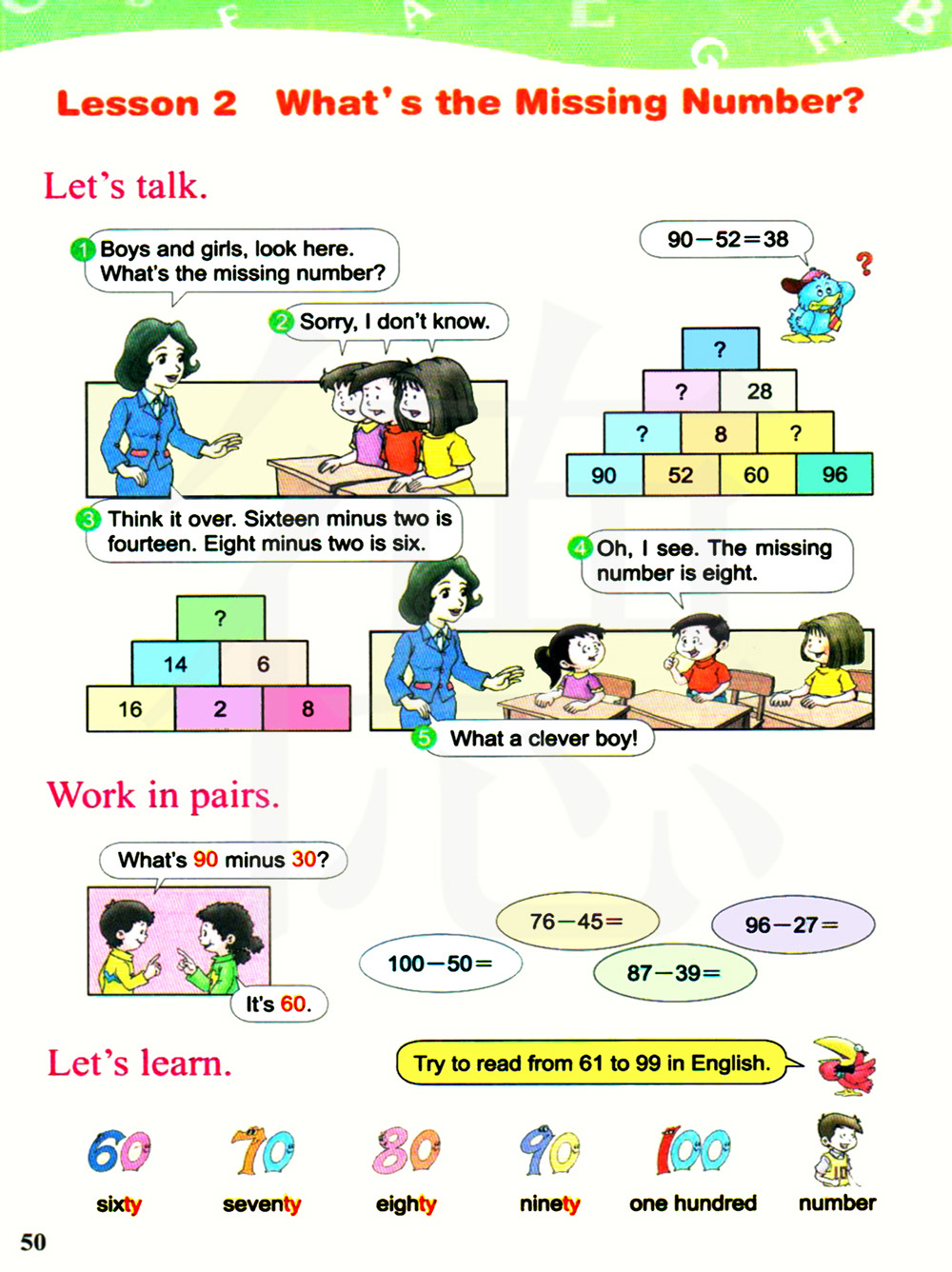 试着用英语读数字61到99.