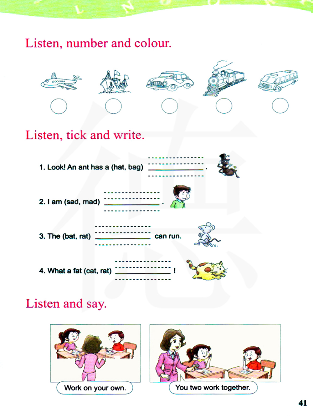 听录音,选择正确的答案并写一写。