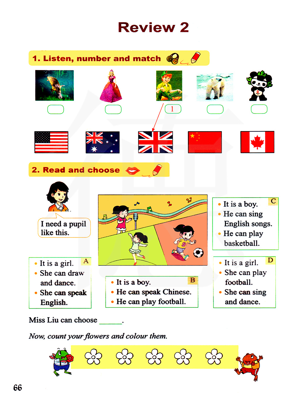 1.听录音,编号并连线。