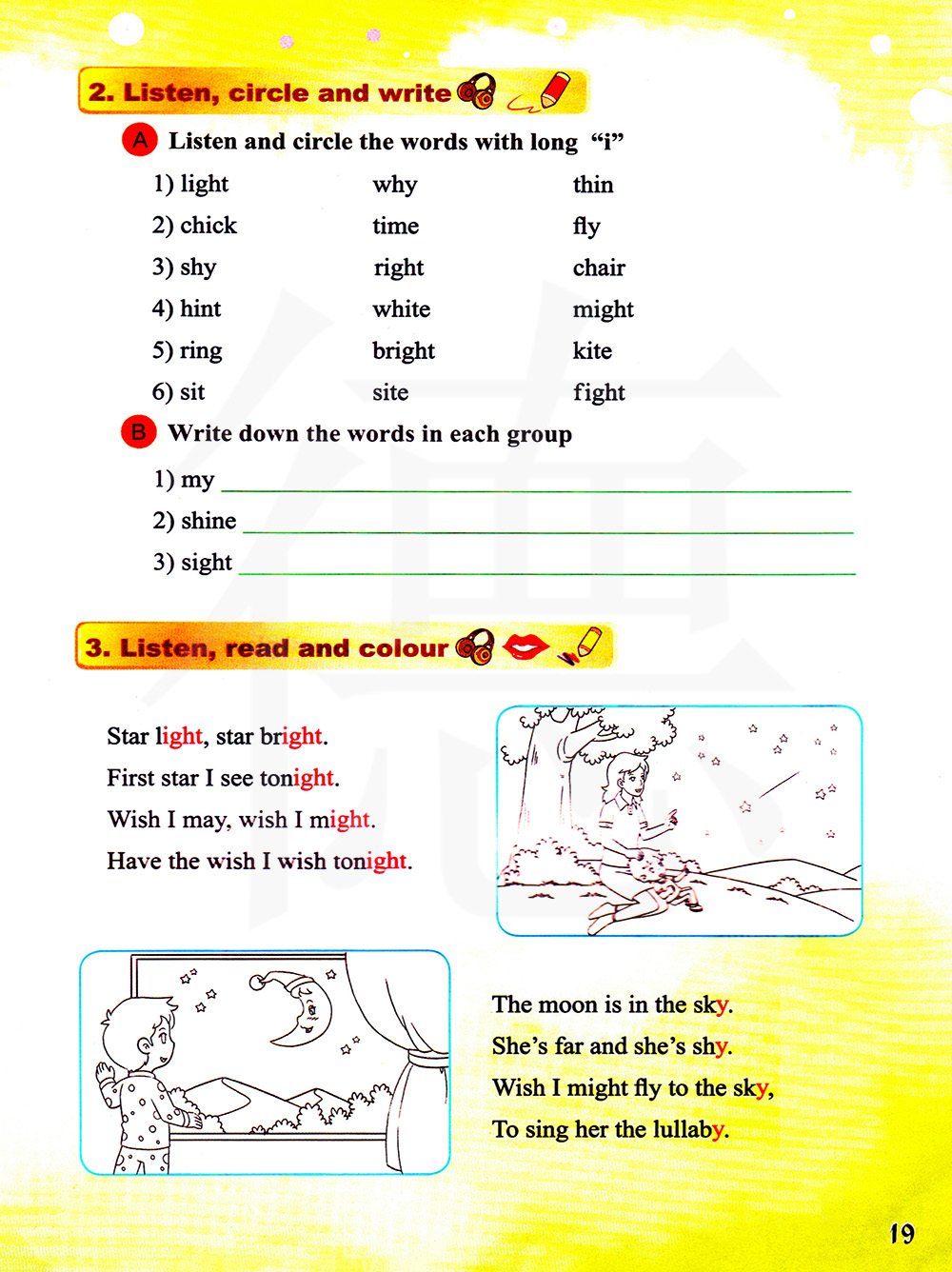 A 听录音,圈出带长音“i”的单词(听力练习)