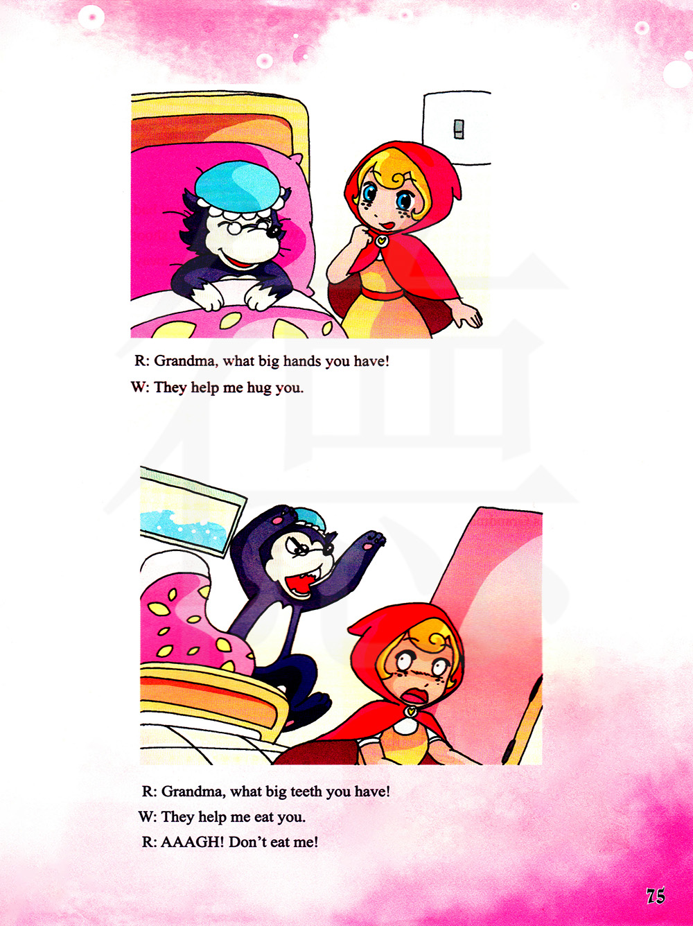 外婆你的牙齿真大啊!这样我才能吃掉你。啊啊啊啊!不要吃我!