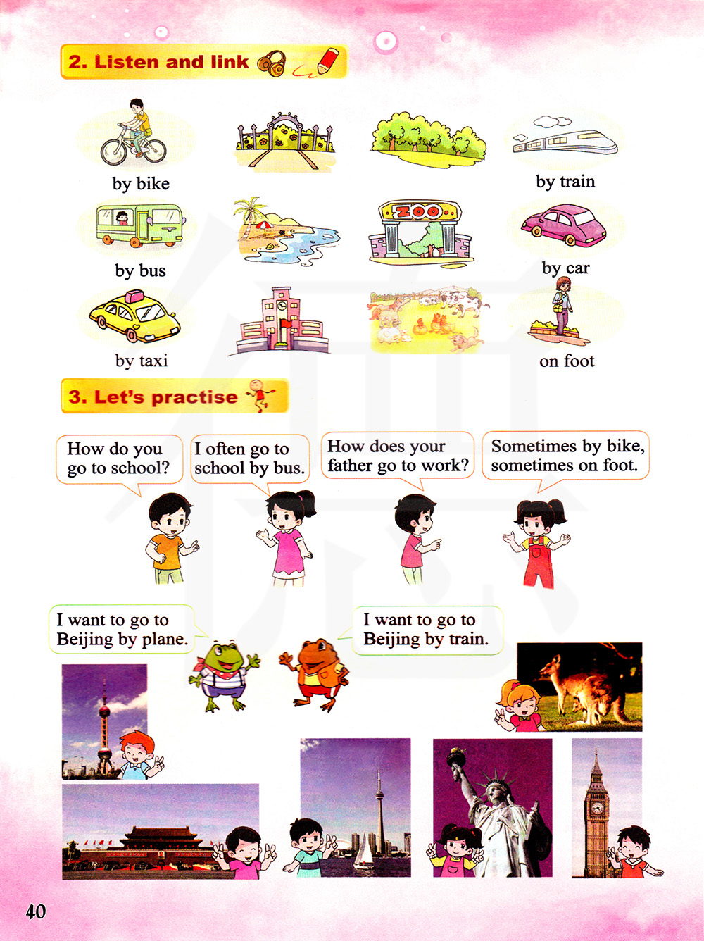 你爸爸怎么去上班? 有时骑自行车,有时步行