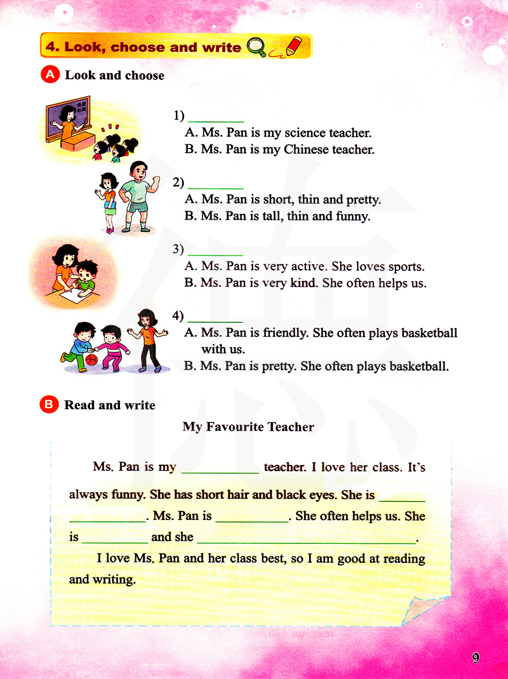 A 潘女士为人友好。她经常和我们一起打篮球。