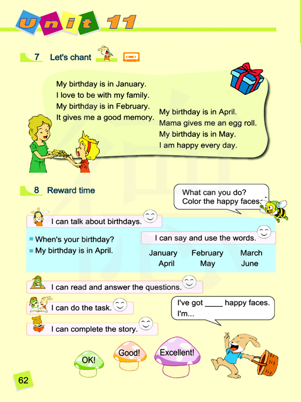 我的生日在4月。妈妈给我一个蛋卷。我的生日在5月,我每天都很开心