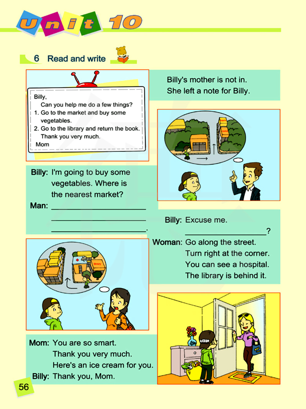打扰了,图书馆在哪里?沿着街道直走,到拐角处右转,你就可以看到一所医院,图书馆就在它后面。