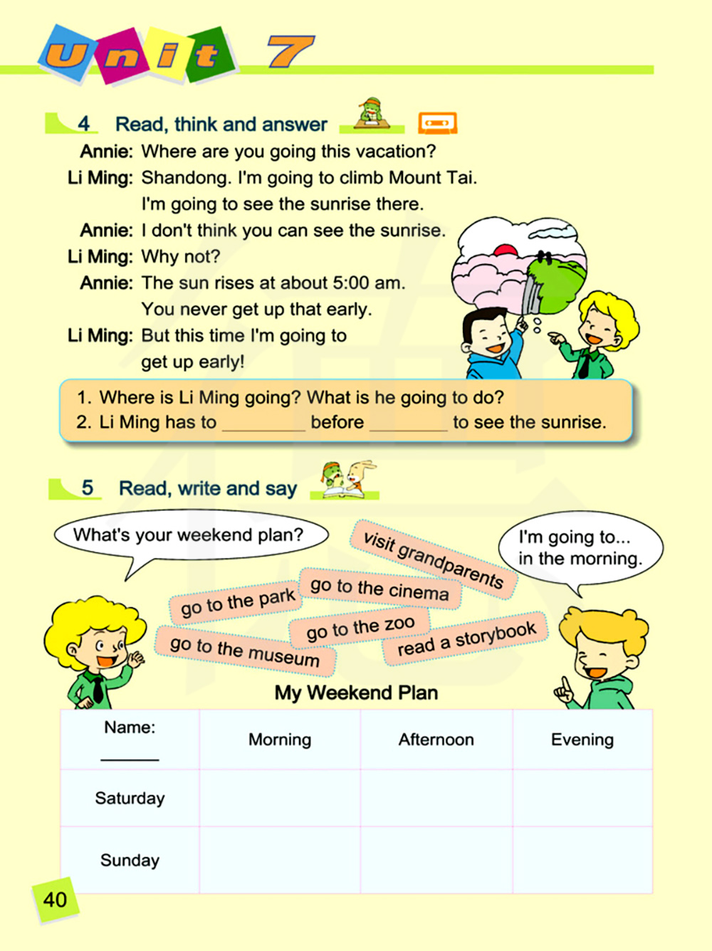 这个假期你要去哪里?山东。我要去爬泰山。我要去那里看日出。