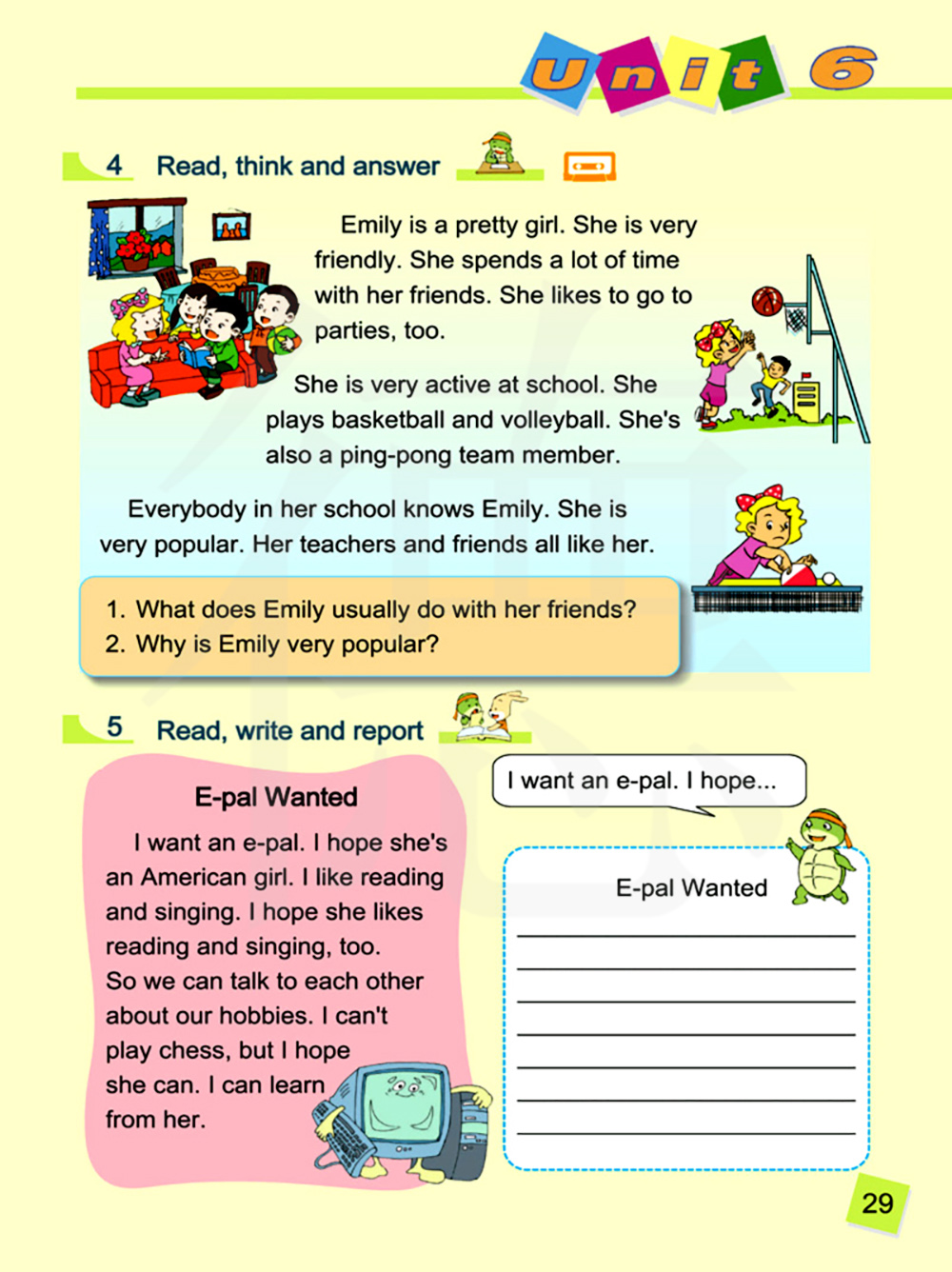 她在学校里的每个人都知道艾米丽。她很受欢迎。她的老师和朋友都喜欢她。
