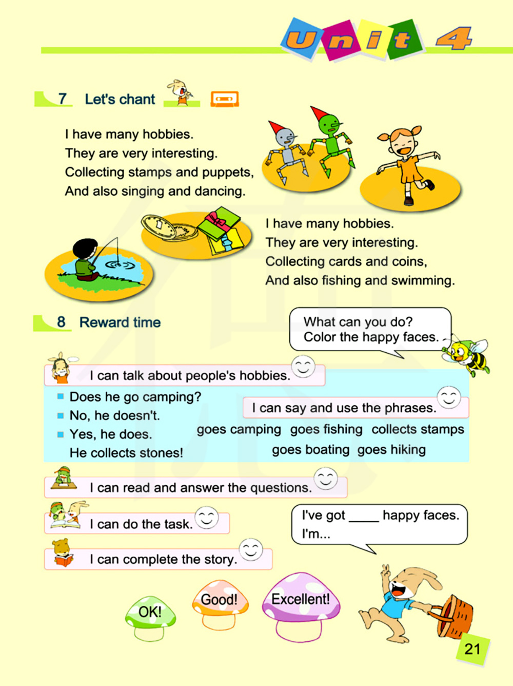 我有很多爱好。它们很有趣。手机邮票和玩偶,还有唱歌和跳舞。
