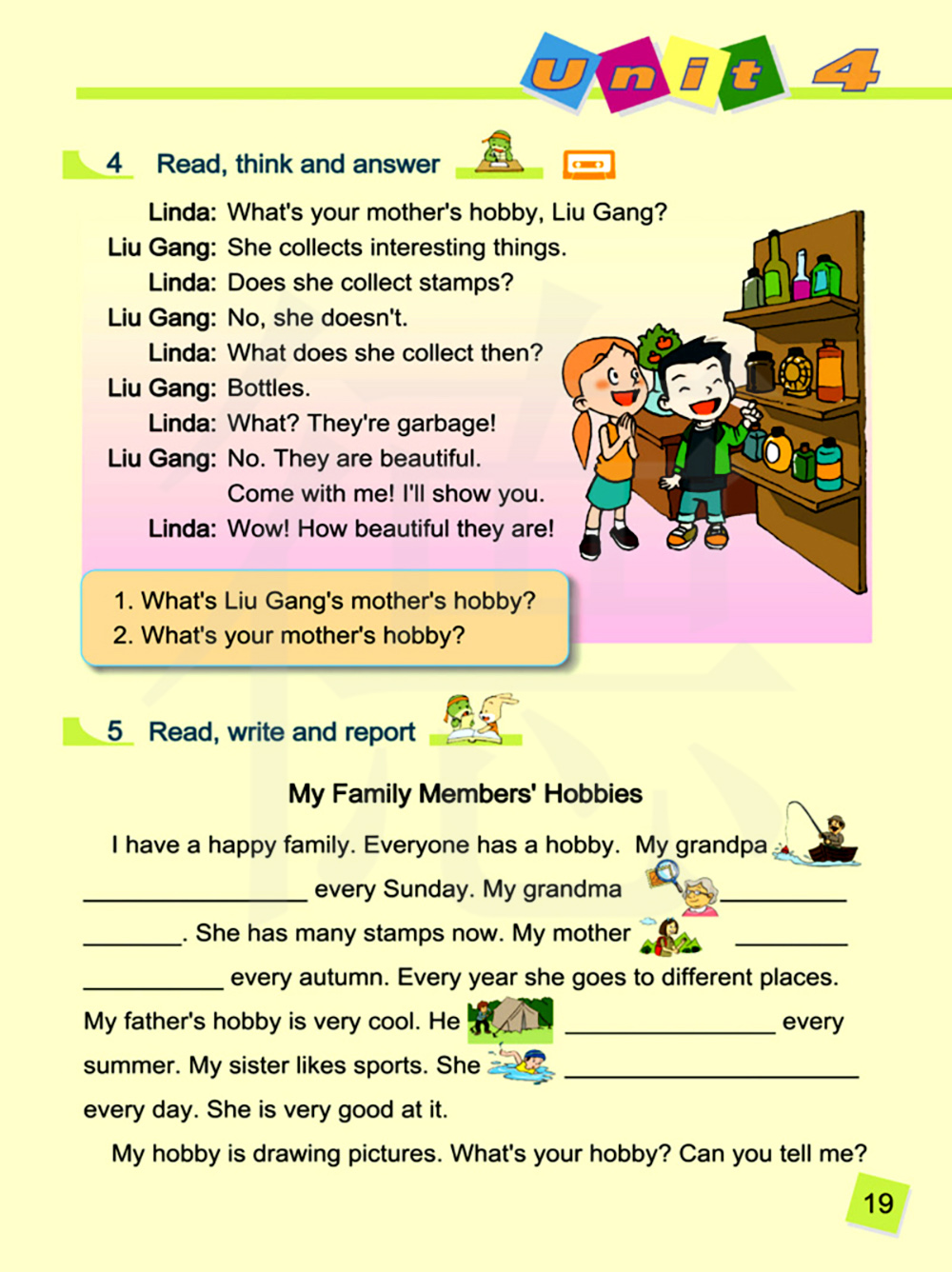 你妈妈的爱好是什么,刘刚?她收集有趣的东西。