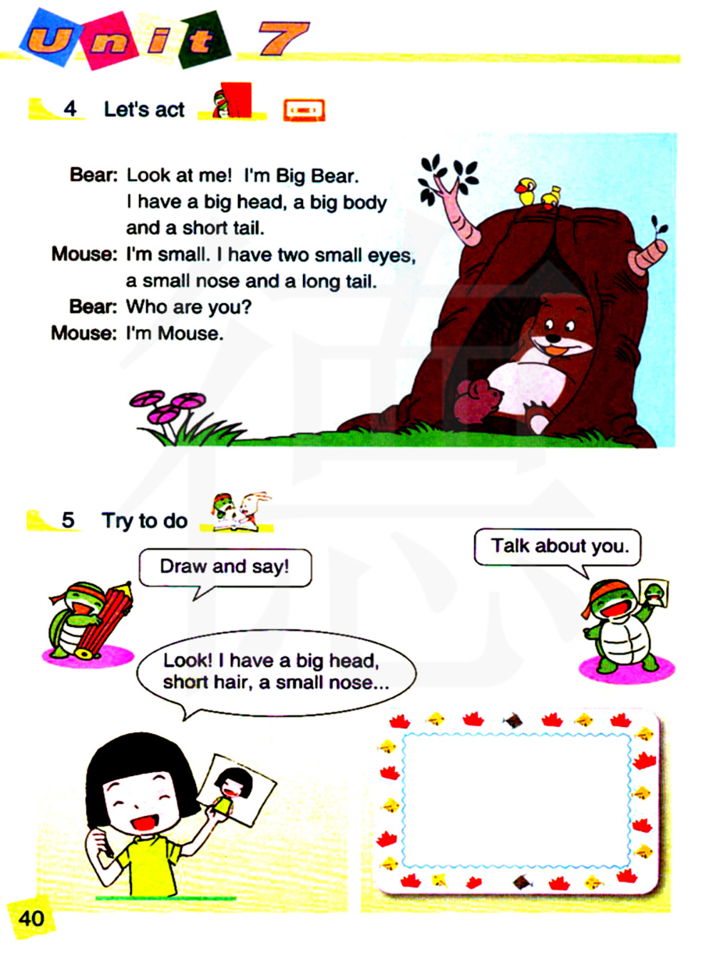 看着我,我是大熊。我有一个大头,一个大身体和一条短尾巴。