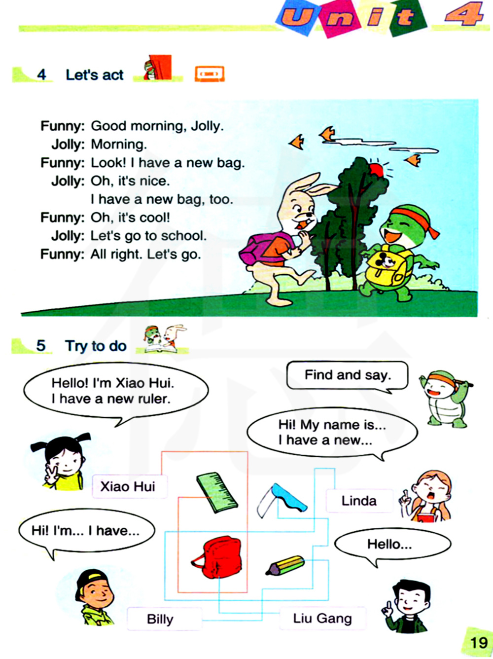 噢,它很漂亮。 我也有一个新书包。 哦,它很酷。