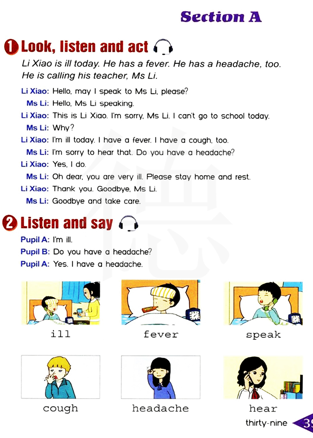 为什么呢?我今天生病了。我发烧了。我还咳嗽。听到那个我很难过,你头痛吗?