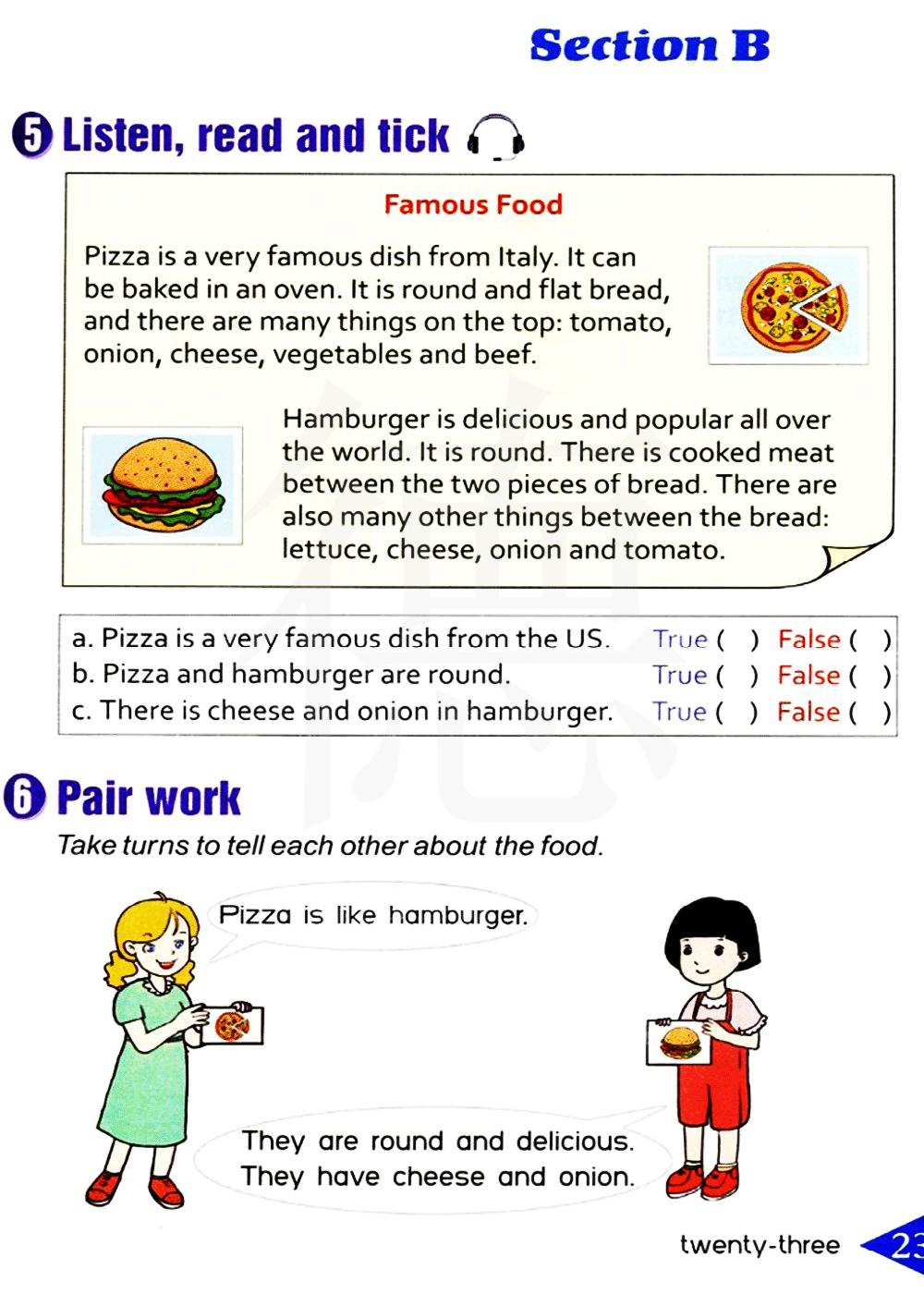 汉堡包很好吃,在世界各地都很受欢迎。它是圆的。在两片面包中间有烤肉。两片面包中间还有很多其他的东西:生菜、奶酪、洋葱和西红柿。