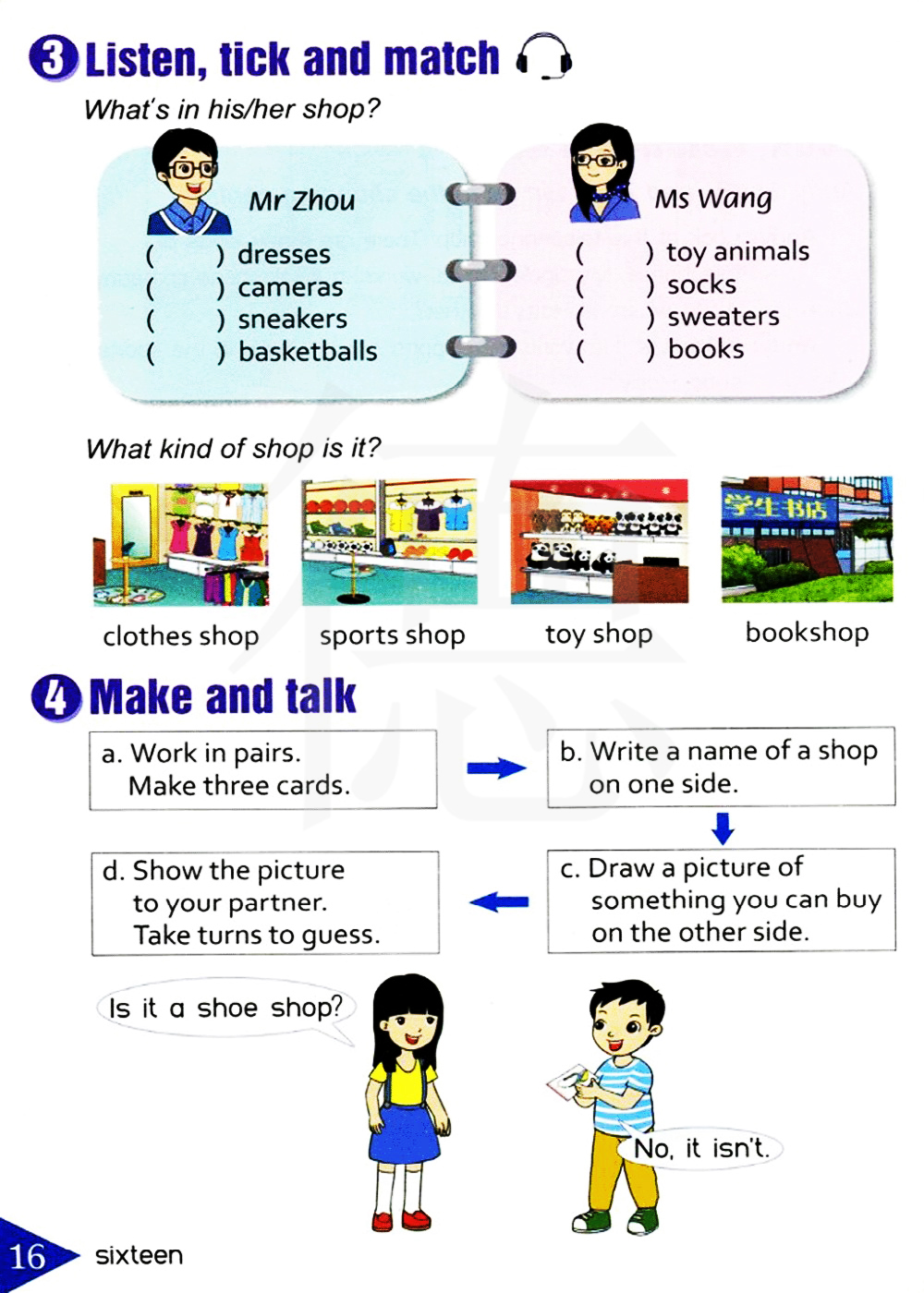 两人一组练习。制作三张卡片