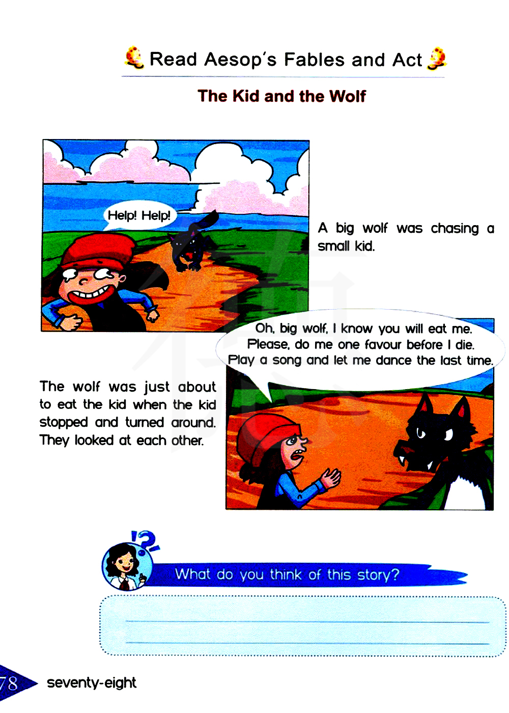 哦,大狼,我知道你将要吃我。求求你了,在我死之前帮我一个忙。演奏一首歌曲让我再跳最后一次舞。