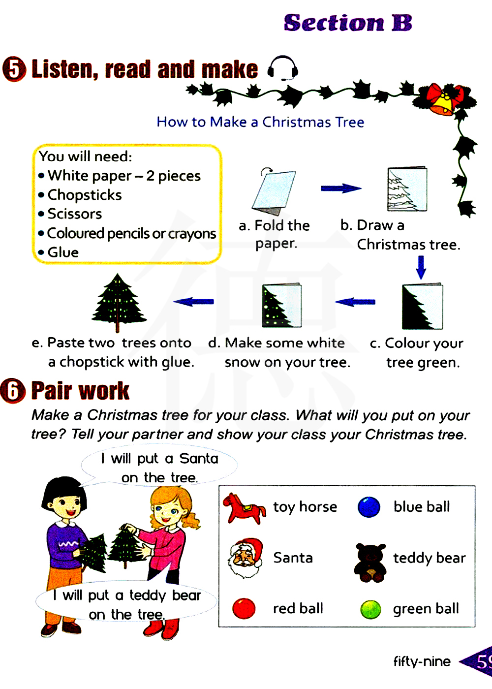 为你的班级做一棵圣诞树。你将在你的树上放什么东西?告诉你的同伴并将你的圣诞树在班上展示。