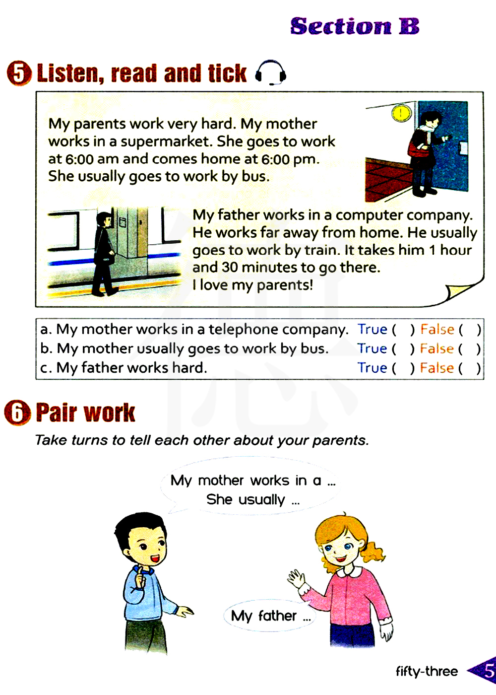 我的父母工作很辛苦。 我母亲在超市上班,她早上六点去上班,下午六点下班。她通常乘公交车去上班。