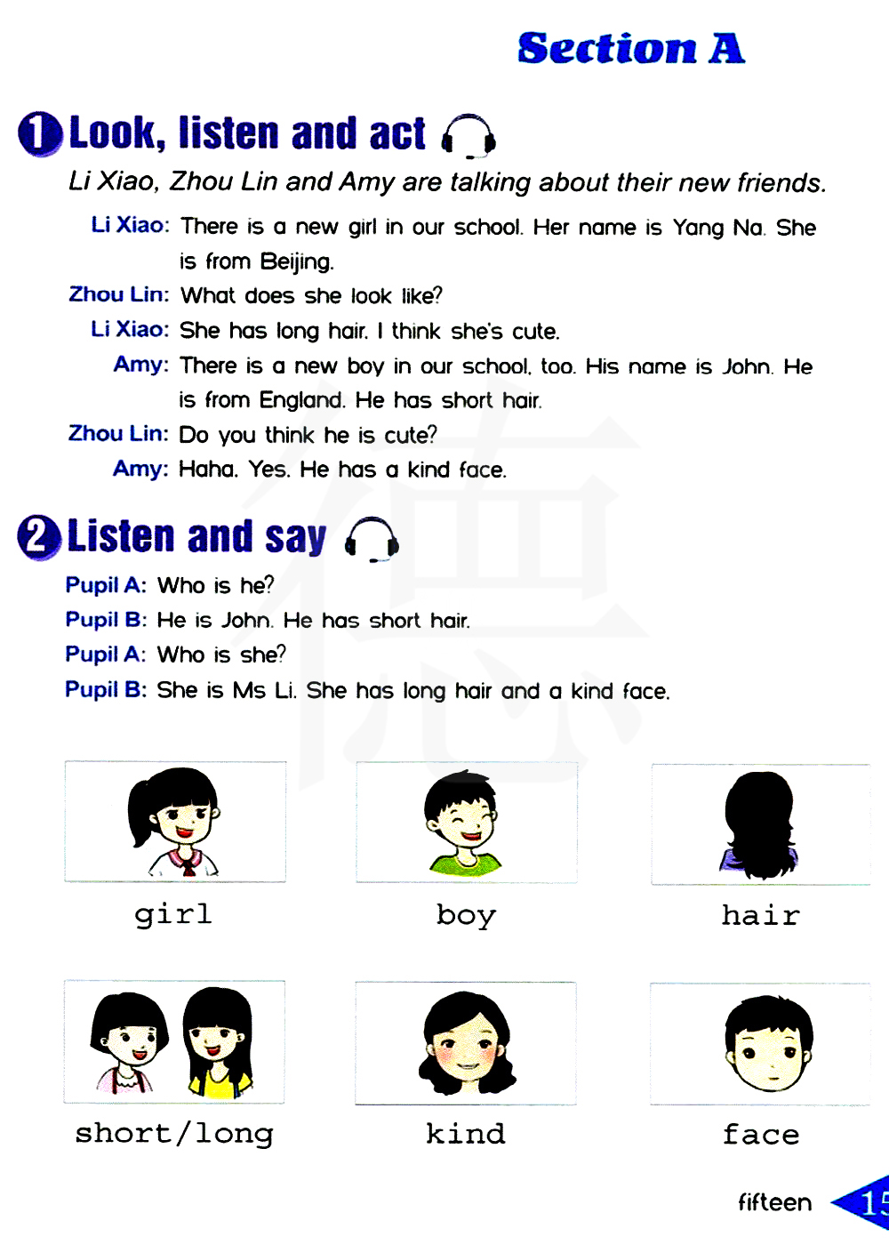 我们学校也新来了一个男孩。他叫约翰。他来自英国。他有一头短发。