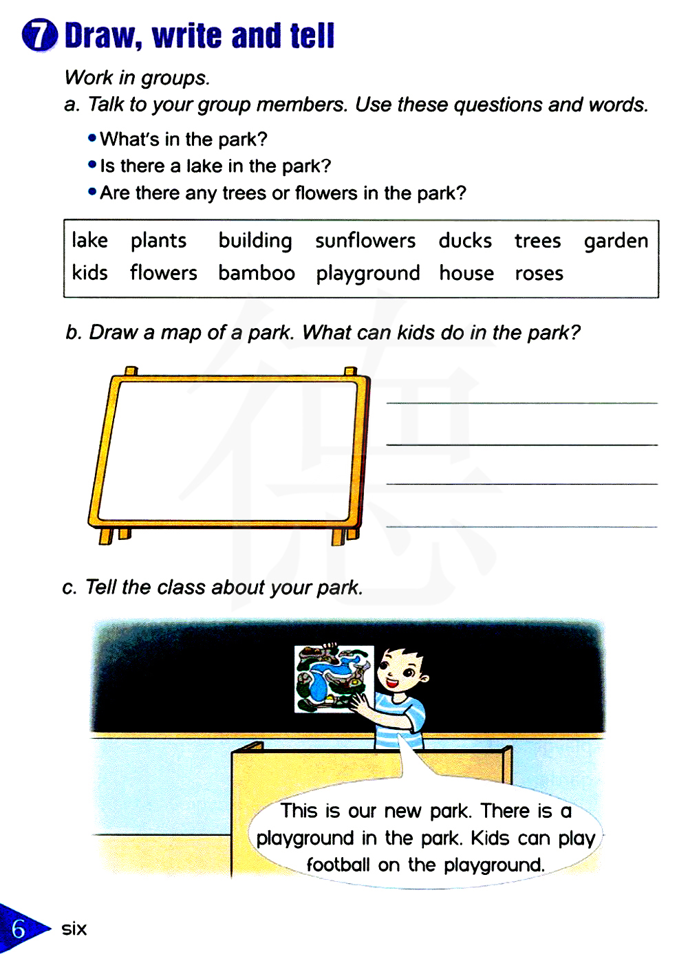 b.画一幅公园的地图。小孩子们可以在公园里干什么?