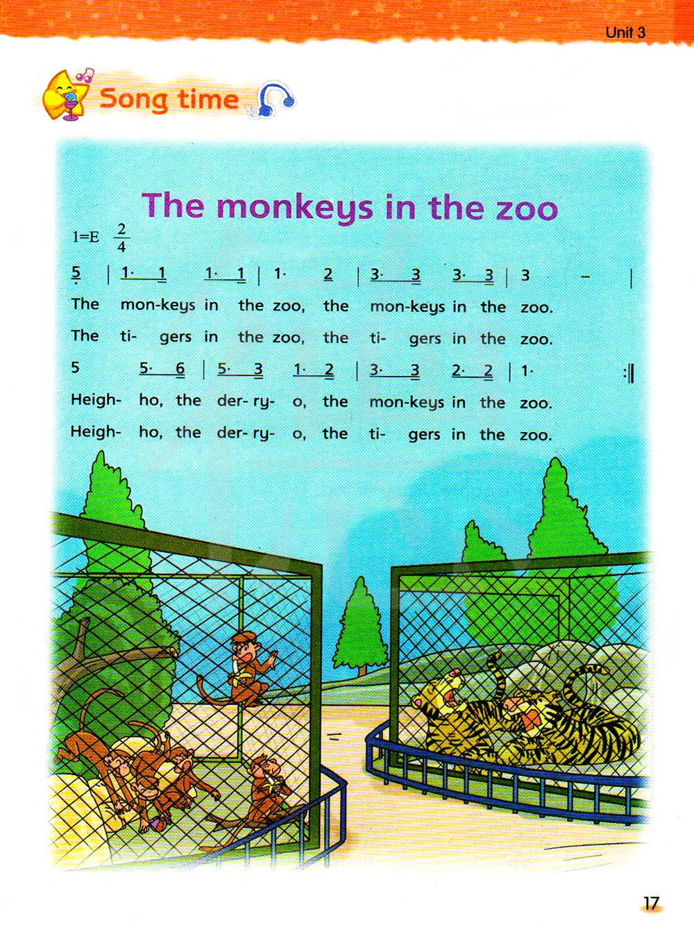 动物园里的猴子,动物园里的猴子。嗨嗬,在德里啊,动物园的猴子。动物园里的老虎,动物园里的老虎。嗨嗬,在德里啊,动物园的老虎。