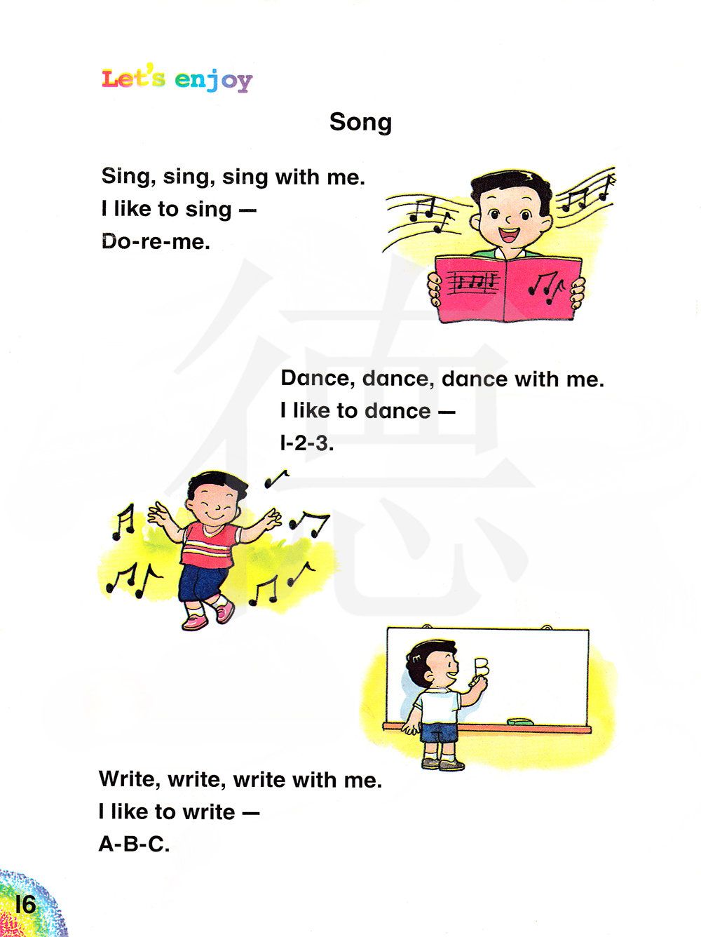 写字,写字,和我一起写字。我喜欢写字—A-B-C。
