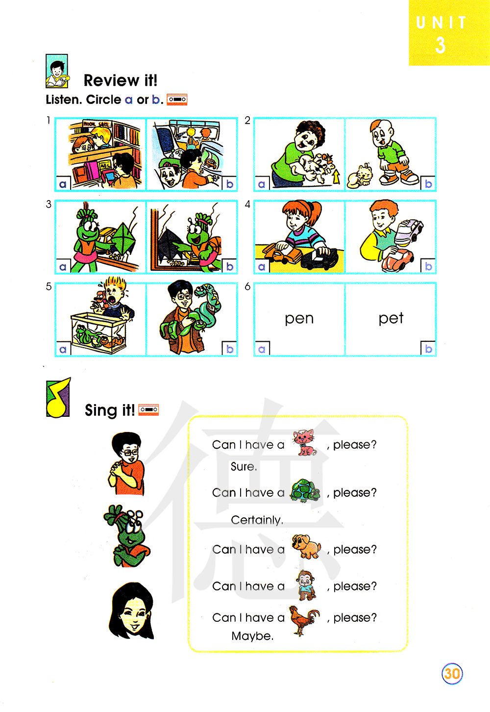听录音。圈出a或是b。