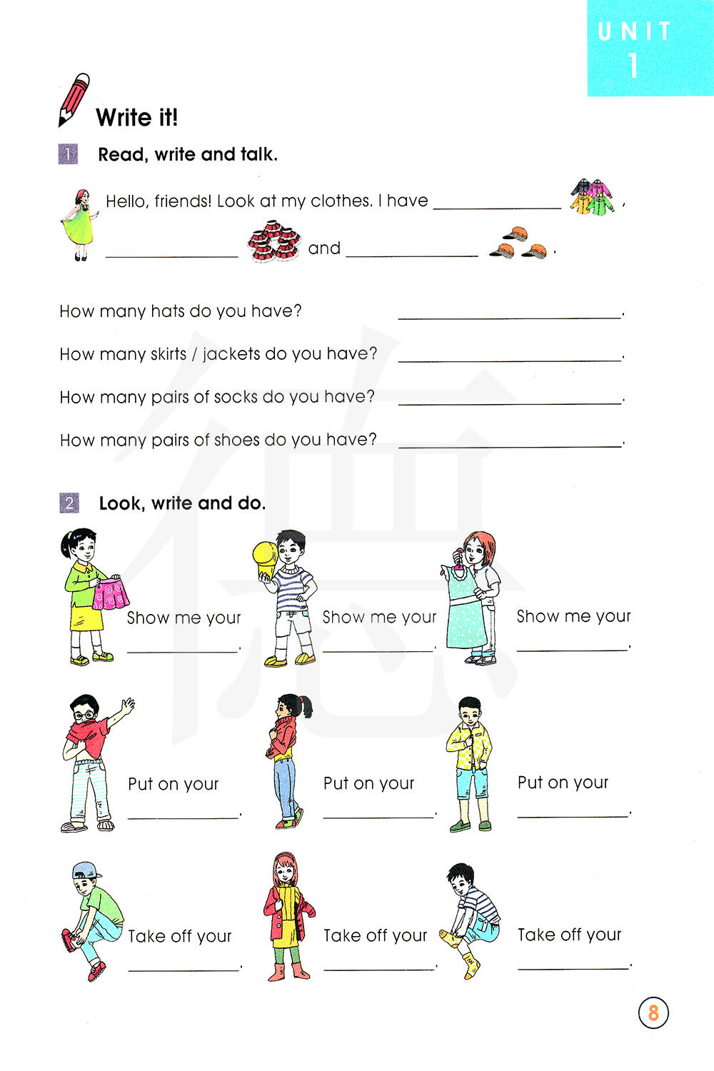 你们好,朋友们!看看我的衣物。我有四件夹克,五条短裙和三顶帽子。