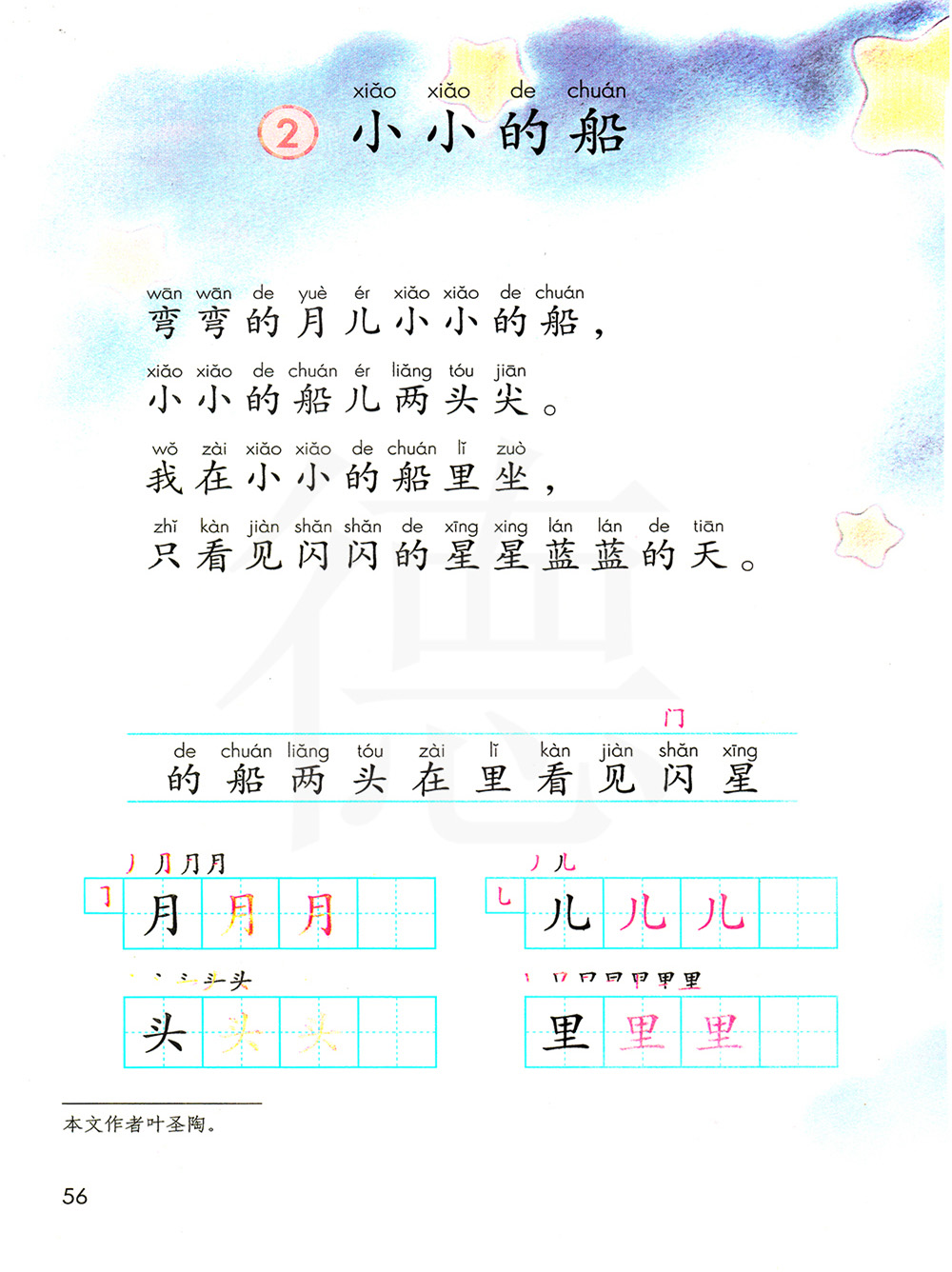 我在小小的船里坐,只看见闪闪的星星蓝蓝的天。