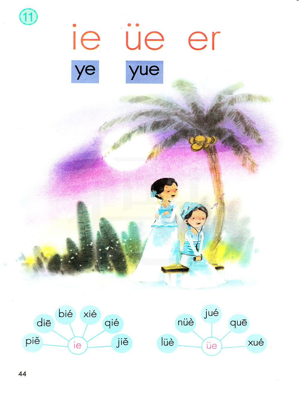 1;yue,yue 与 üe的读音相同,复韵母 üe,整体认读音节 yue。写 yue时,要把 üe 的两点去掉,前面加上声母 y。谁能说说为什么要去掉 ü的两点?