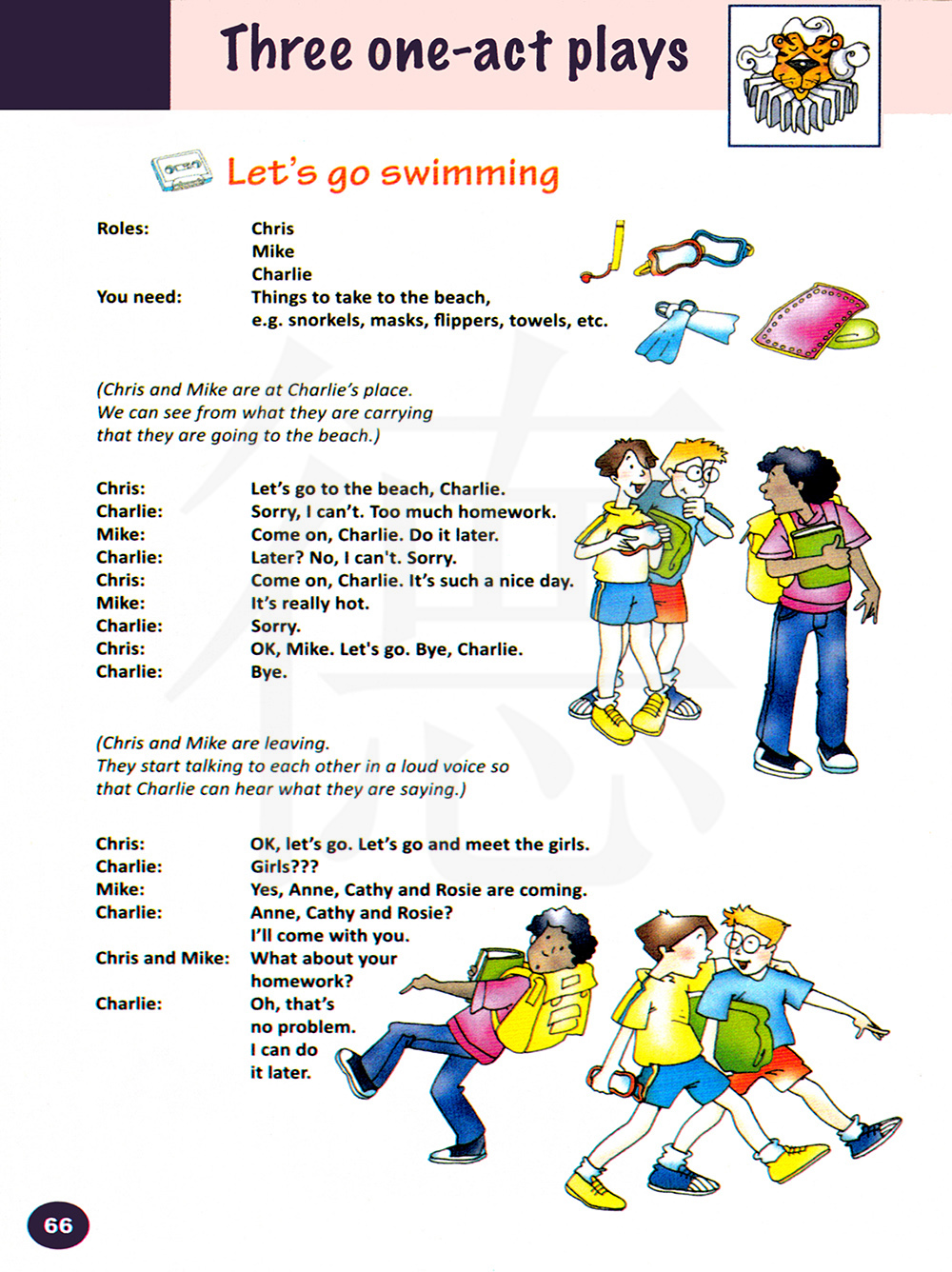 克里斯和麦克:你的作业怎么办? 查利:噢,没问题,我可以迟些时间做。
