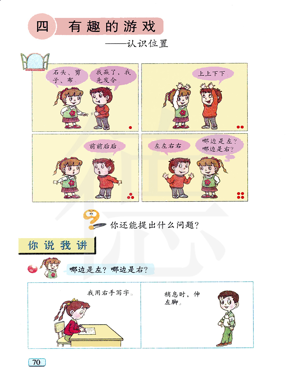 1、 认识并会写上下、 左右、 前后。