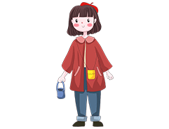 一个身穿红色罩衫的女孩迈着轻快的步子下山。