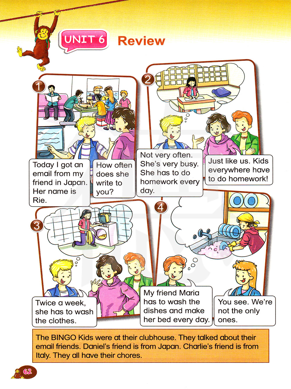 冰果儿童在他们的会所里聚会,他们在谈论她们的网友 ,丹尼尔的网友来自日本,查理的网友来自意大利 他们全都要做家务