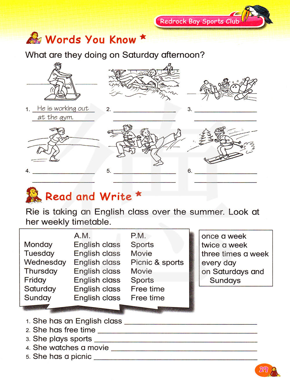 里在上一堂夏季英语课,看一看他的一周时间表