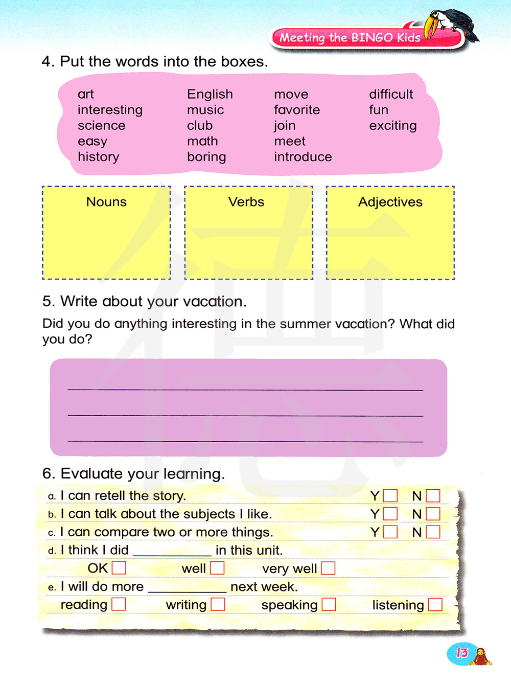 将单词放在相应的对框内