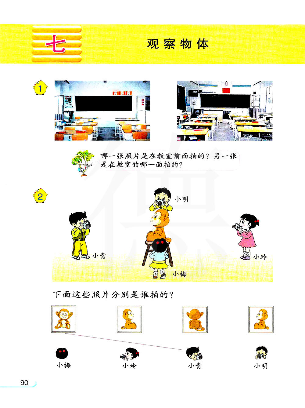 1.从前、后、左、右不同的位置观察到的物体形状不一样。(课本93页第7题,97页第15题,在家可利用实物进行观察,以加深对该知识点的认识)