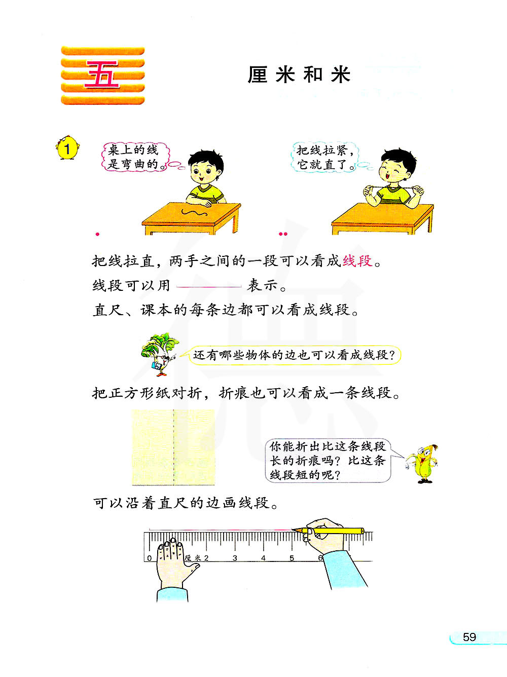 5.线段的特点:①线段是直的②线段有两个端点。③线段可以测量出长度,是有大小的。