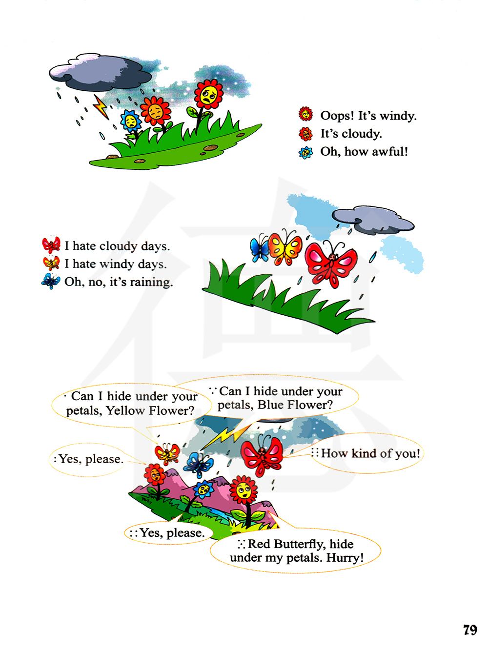 红蝴蝶,躲在我的花瓣下面吧。快点!