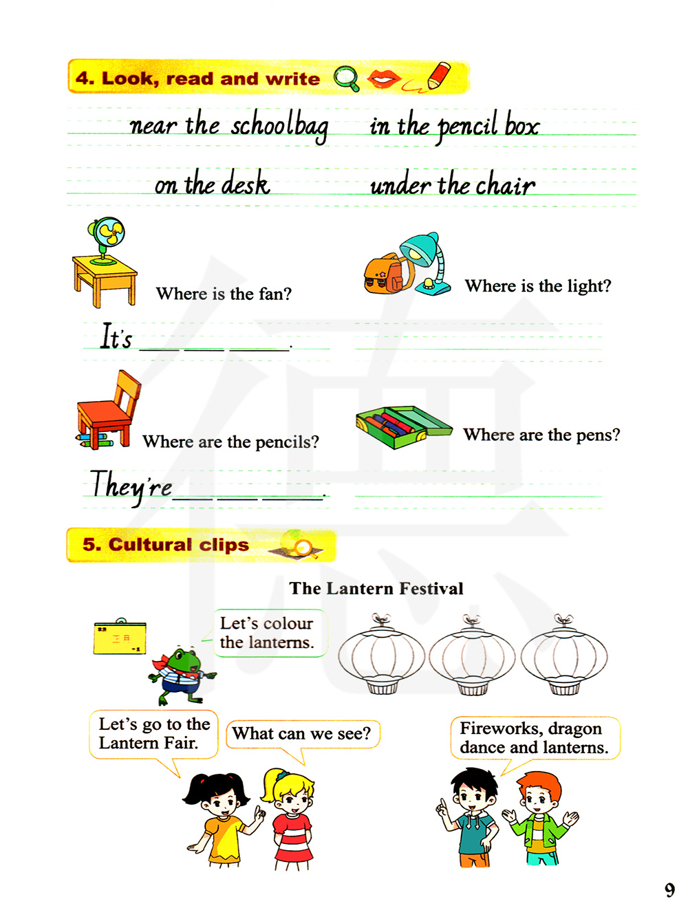 风扇在哪里呢?灯在哪里呢?铅笔在哪里呢?钢笔在哪里呢?