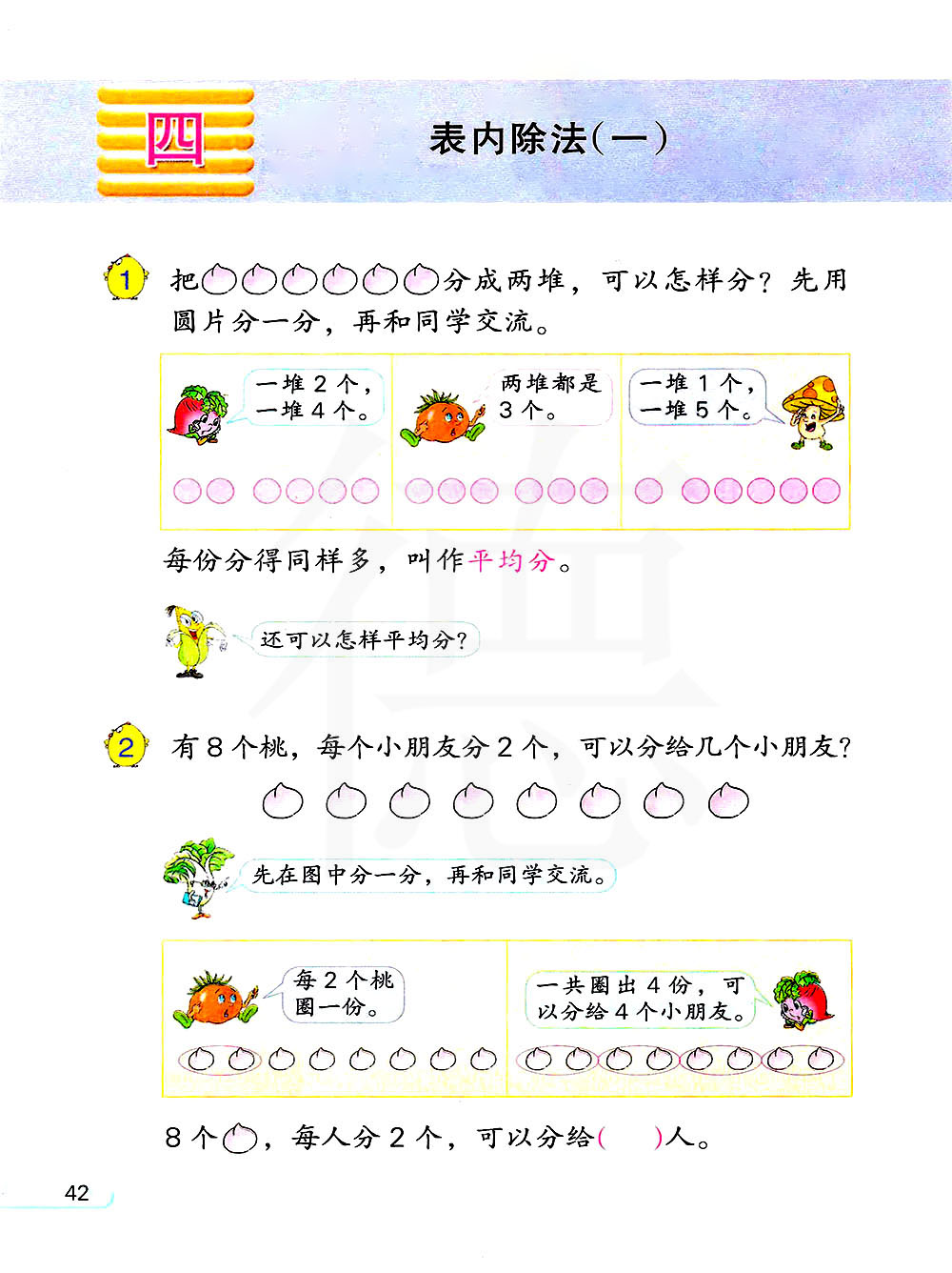 平均分:每份分得同样多,叫作平均分。
