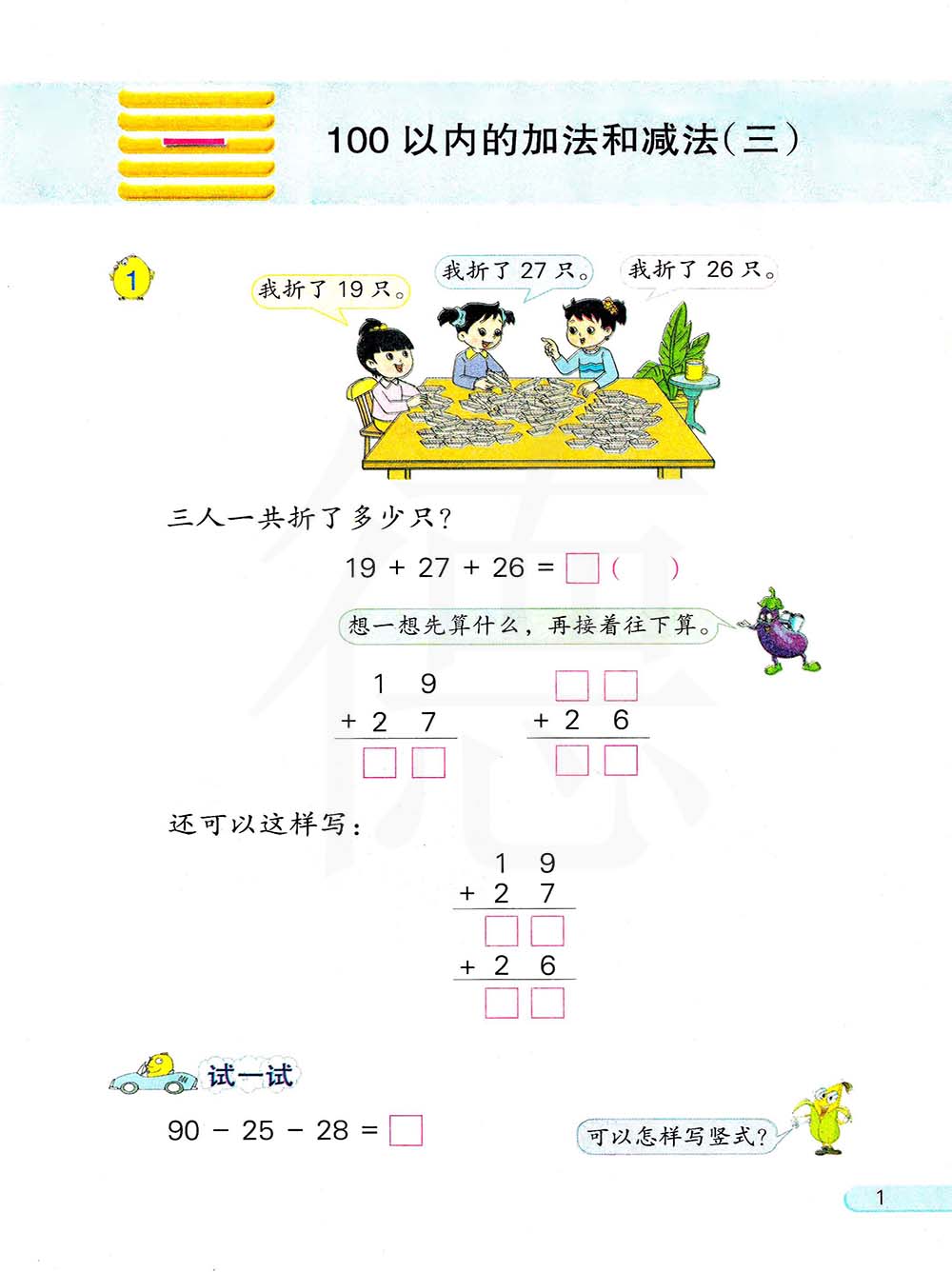 1.用竖式计算连加、连减和加、减混合运算: