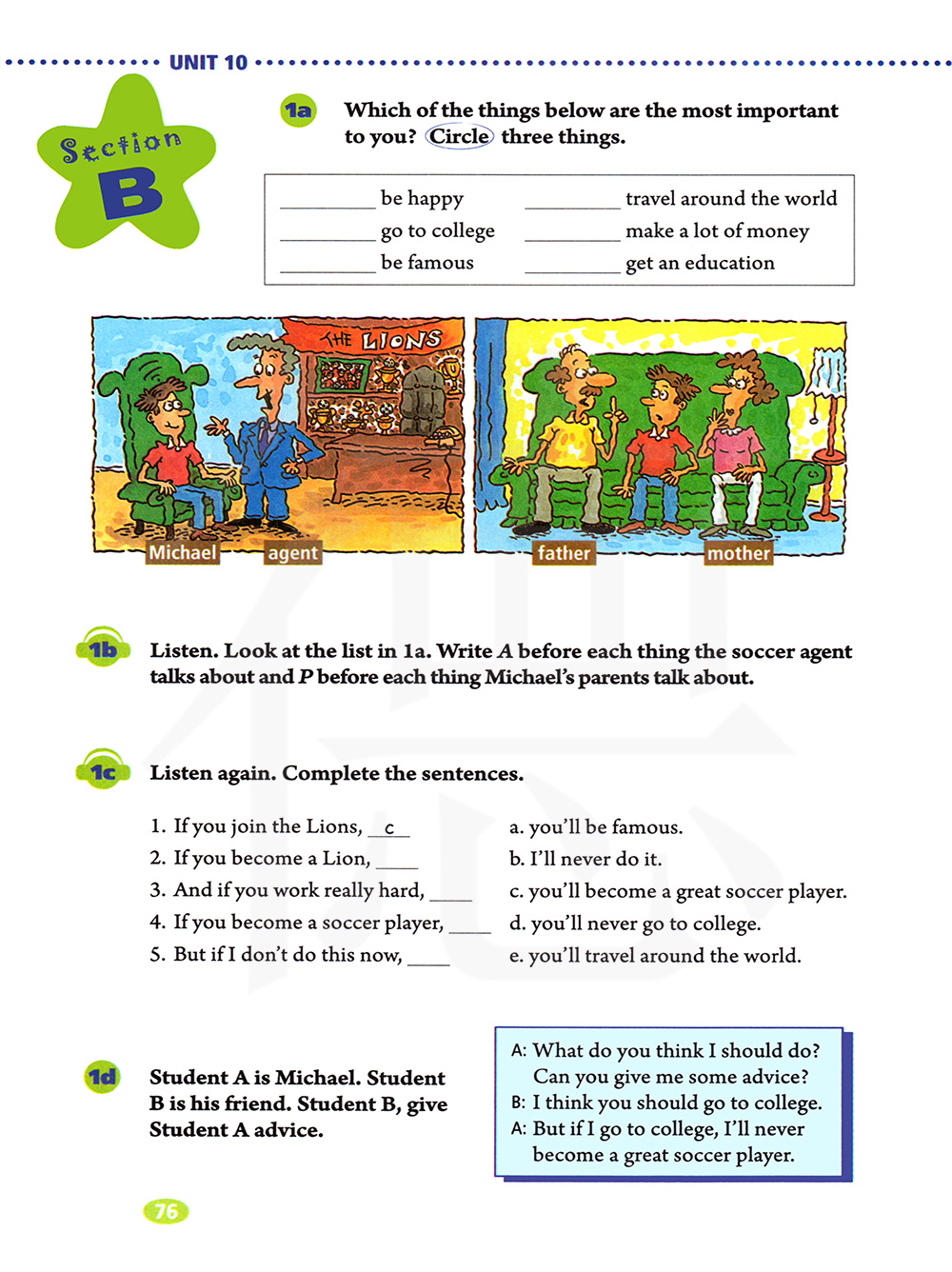 听录音,看1a里的清单。在足球代理人谈论的每件事情前写A,在迈克尔父母谈论的每件事情前写P。
