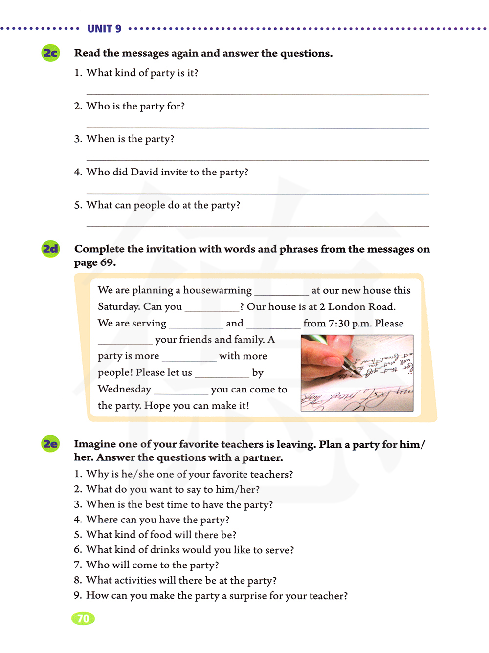 用69页信息里的词语和短语完成邀请。