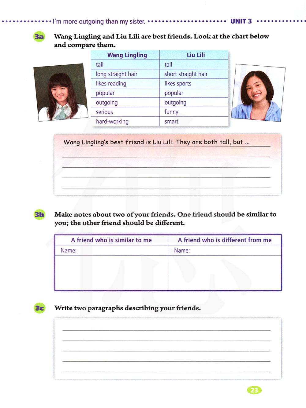 王玲玲和刘丽丽是最好的朋友。看下面的表格并比较他们