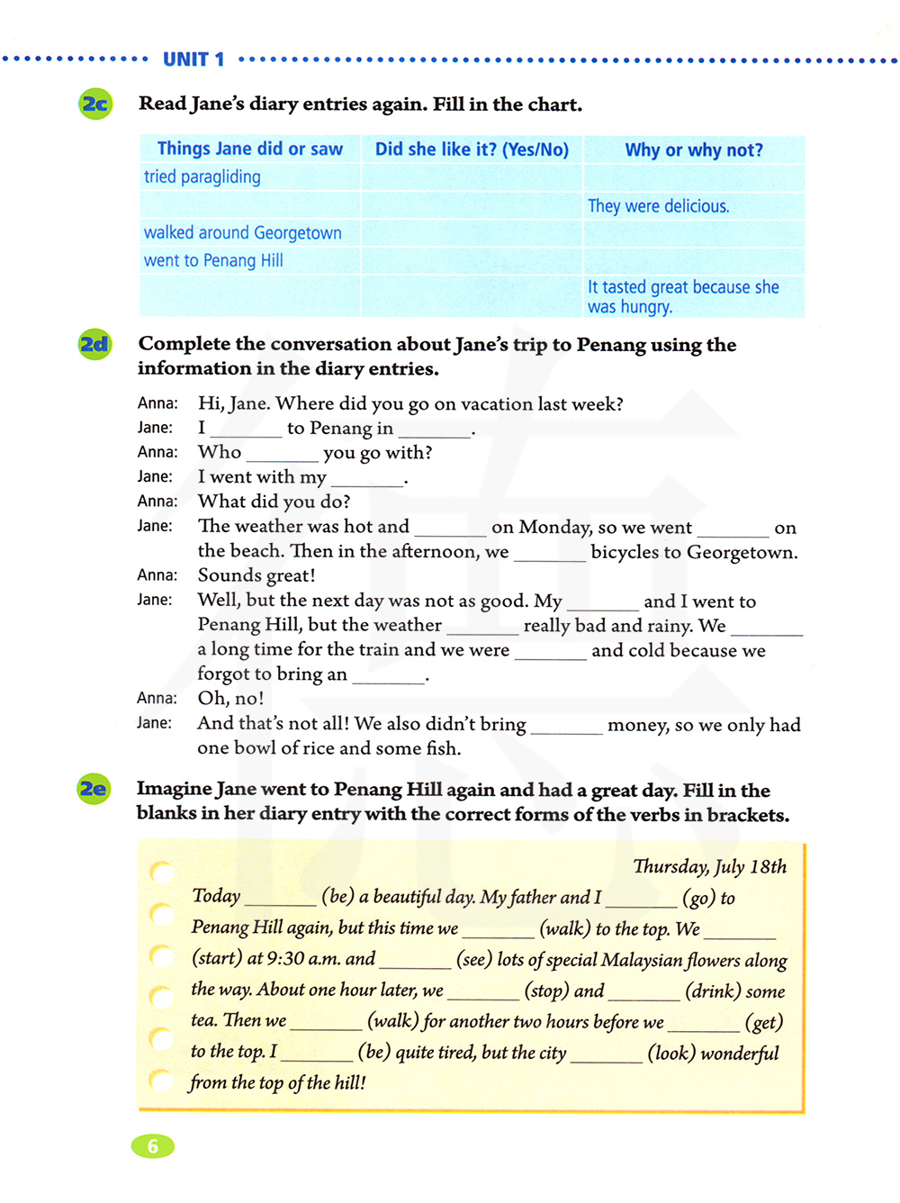 想象简又去了槟城山并且度过了很愉快的一天。用括号里动词的正确形式完成她的日记条目
