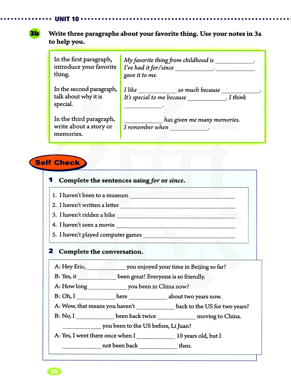 写三个段落,关于你最喜欢的东西。使用3a中的笔记来帮助你。