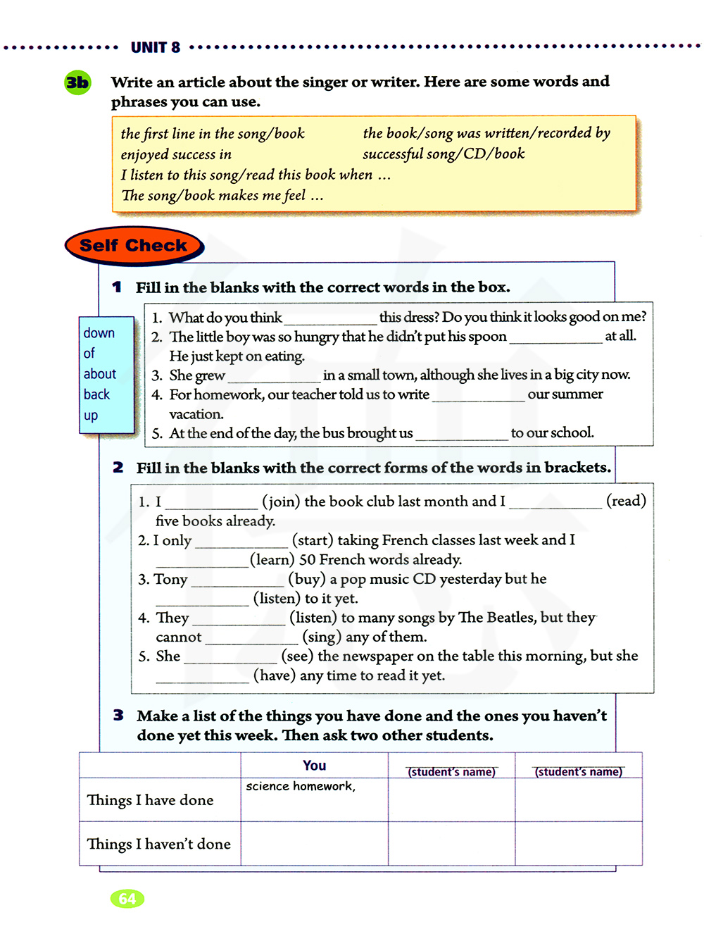 制作一张你这周已经完成或未完成的事情的清单,然后问一问其他两个学生
