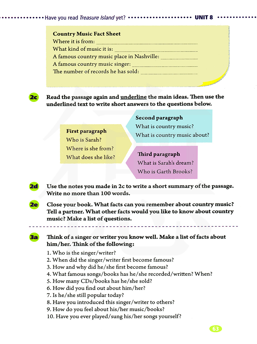 合上书本。你还记得乡村音乐的哪些实际情况,告诉你的同伴。你还想知道乡村音乐的其他情况吗?制作一张问题清单。